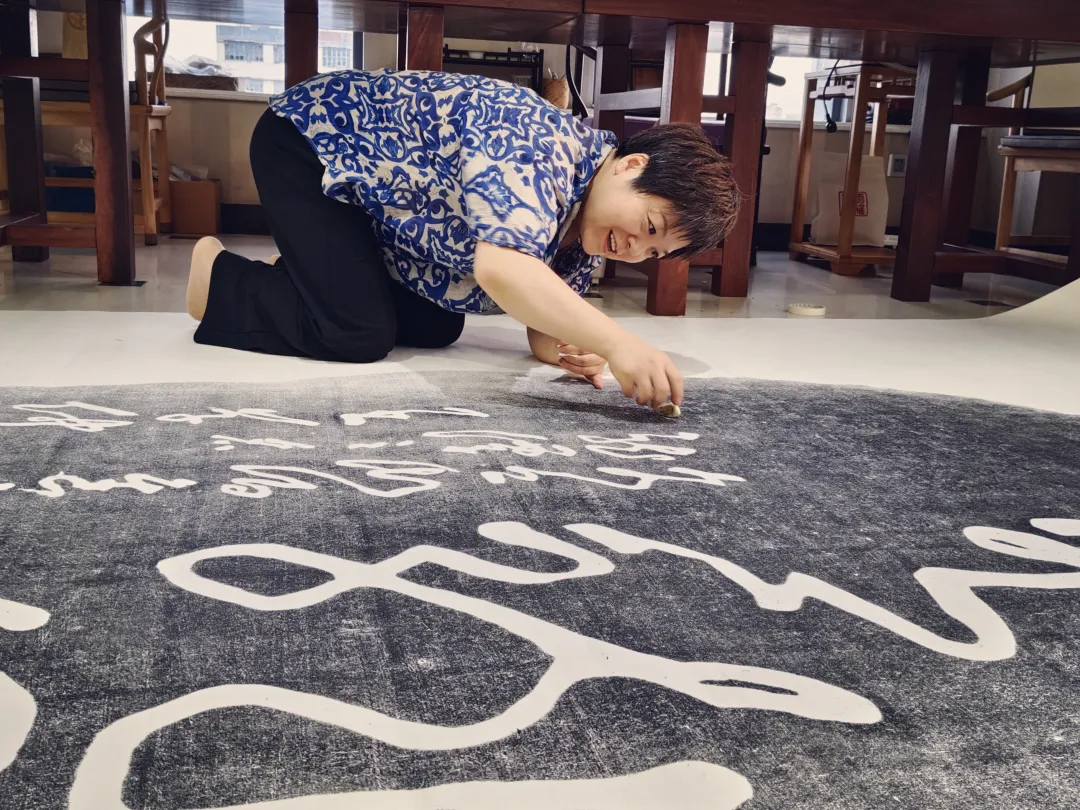 刘栋先生女弟子陈雨杉用墨包拓石