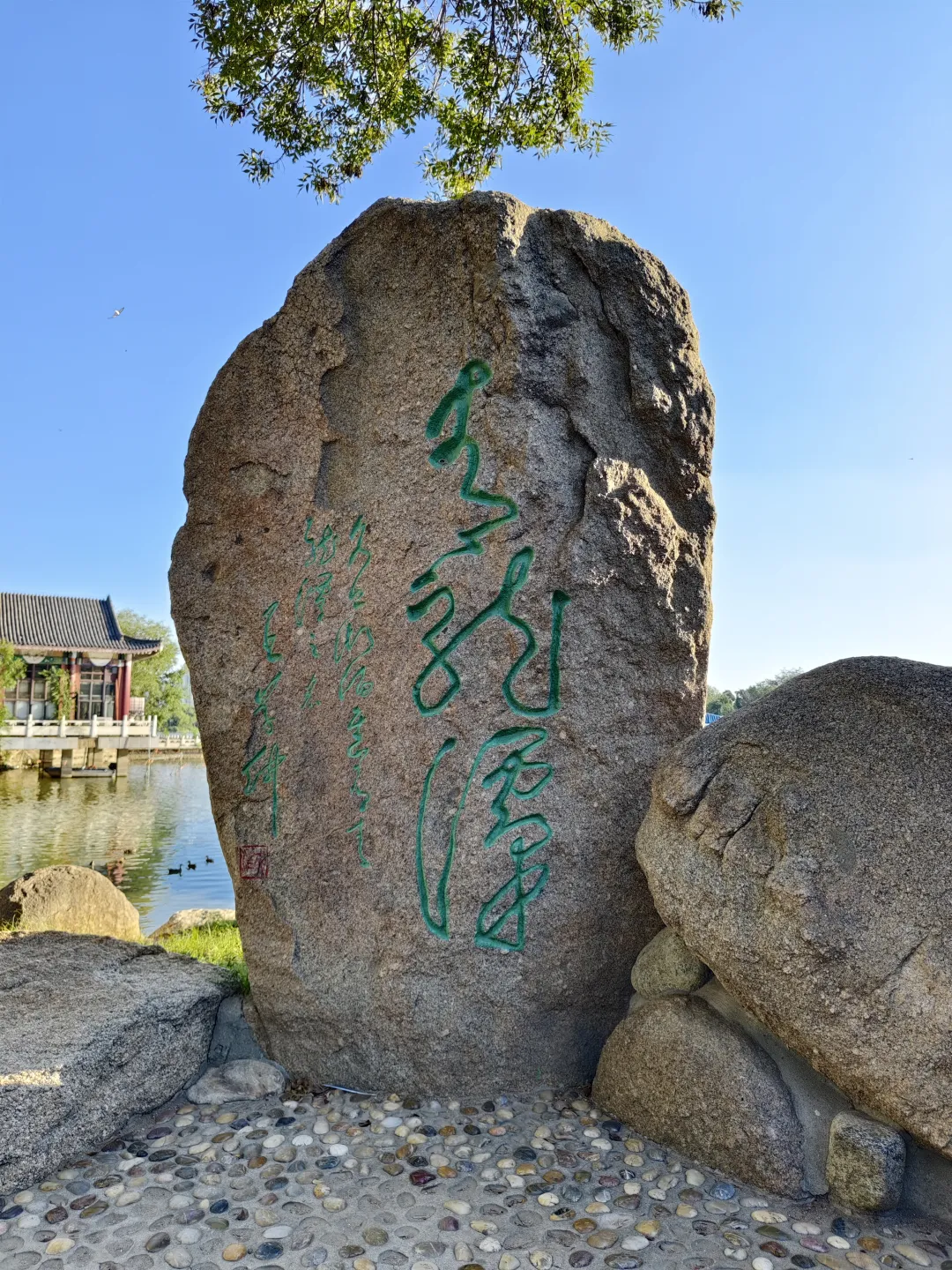 1988年,“津门八大家”之一的书坛巨擘王学仲先生特为水上公园题写了“青龙潭”三个大字,由解心逸先生刻在一块巨石上,竖立在美丽的湖畔,为这片湖泊增添了一抹浓厚的文化色彩。