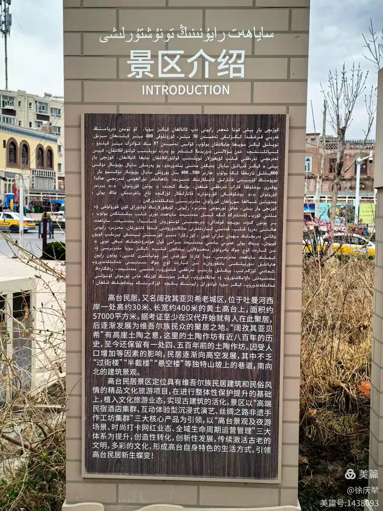 高台民居这里的维吾尔族人世代聚居,房屋依崖而建,家族人口增多一代,便在祖辈的房上加盖一层楼,这样一代一代,房连房,楼连楼,层层叠叠,这些房屋大多是土房,也有不少新建的砖房。在这些随意建造的楼上楼、楼外楼之间,形成了四通八达、纵横交错、曲曲弯弯、忽上忽下的50多条小巷,没有本地人带路,外来人一定会迷路。