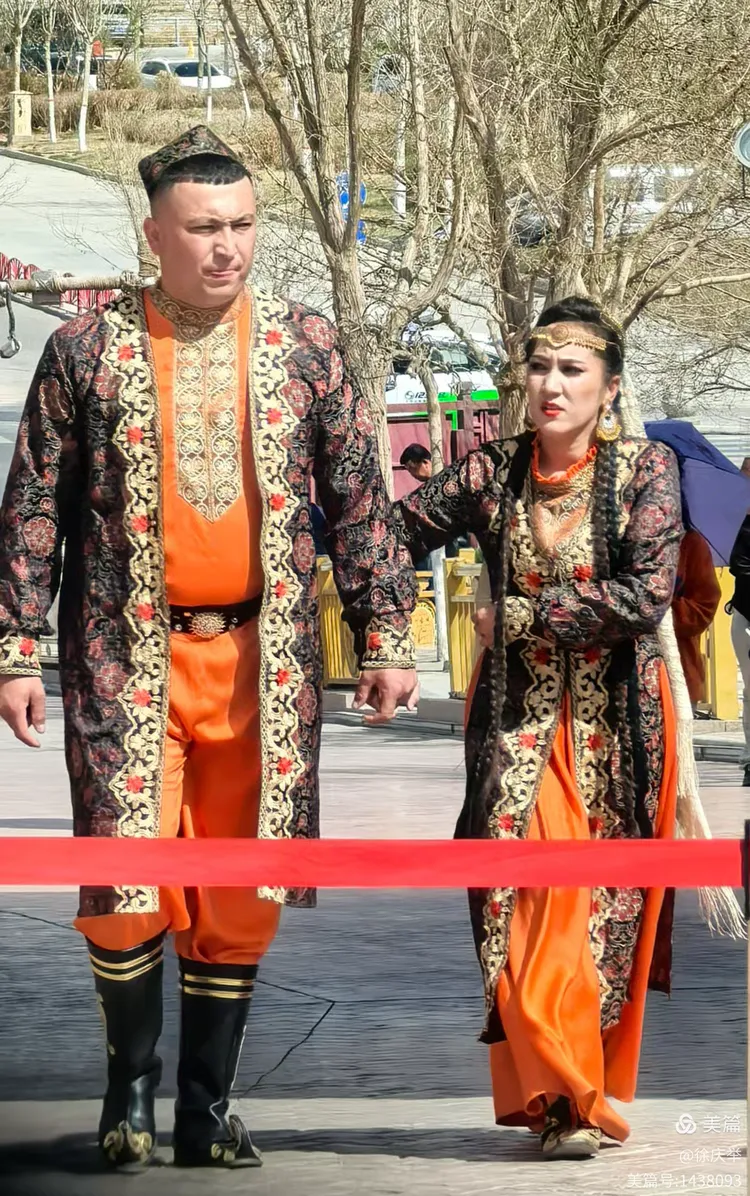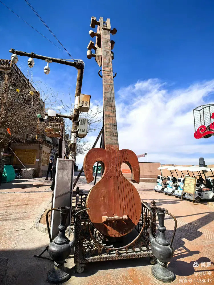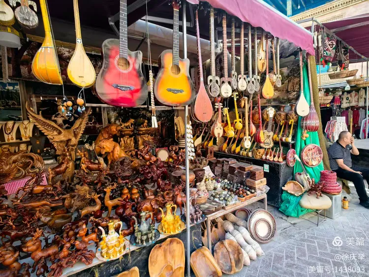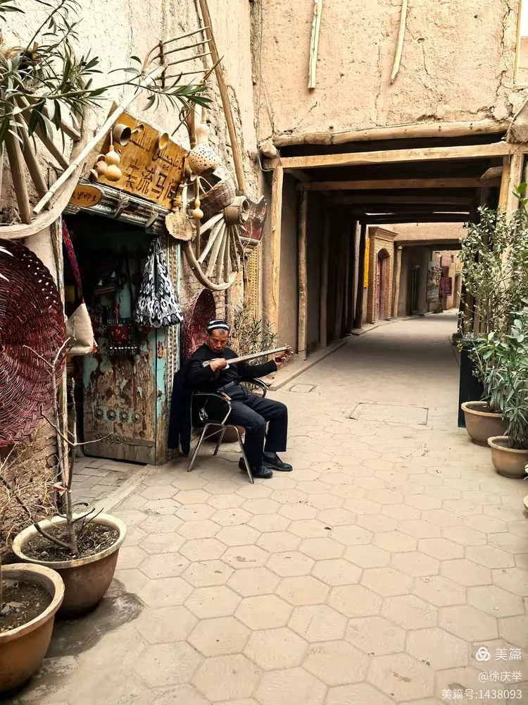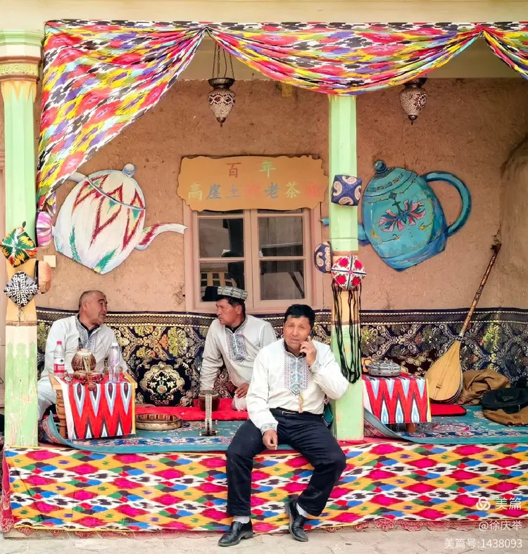 景区里的维吾尔旅汉子,他们手持乐器,游客可以付费点歌。