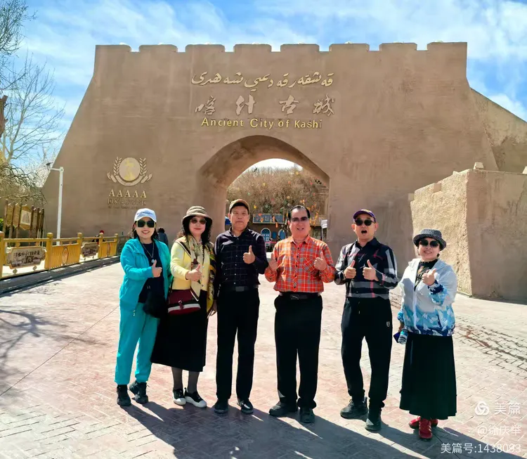 喀什古城到了,我们一行6人在古城东门前合影留念。