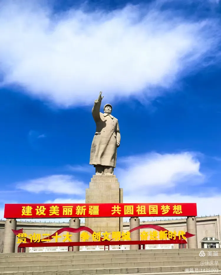 吃饭完毕,我们乘车前往喀什古城。途中看到伟人的高大塑像,我透过车窗立即抓拍,效果真好,我非常满意。