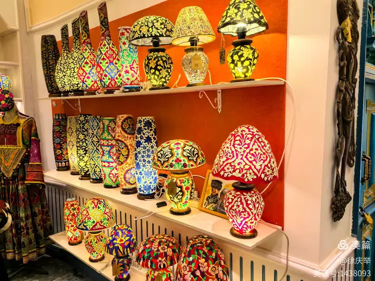景区的一家特色小店:巴基斯坦手绘骆驼皮灯。