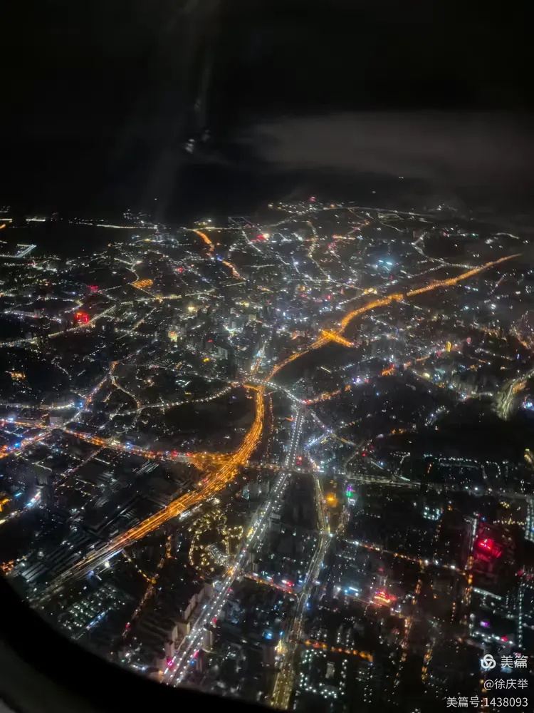 飞机快降落时,从空中看夜幕下的乌鲁木齐。