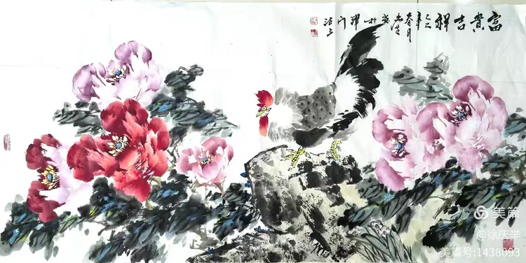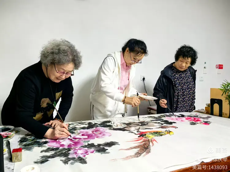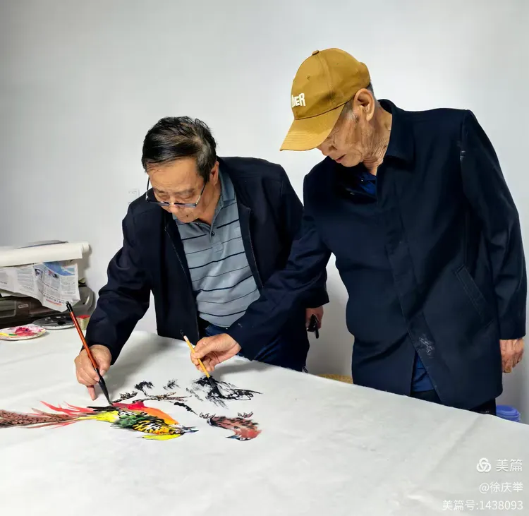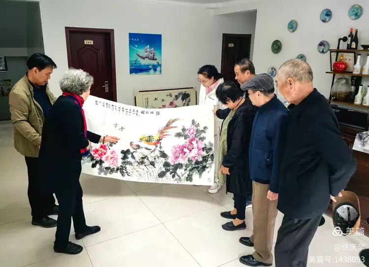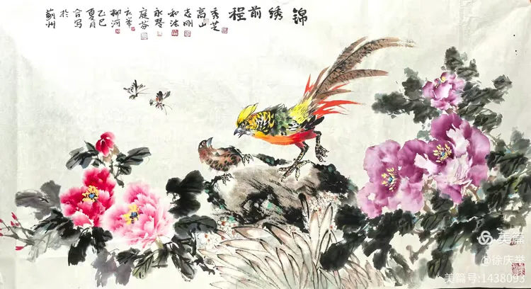 众画家合作完成六尺整纸花鸟画《锦绣前程》。