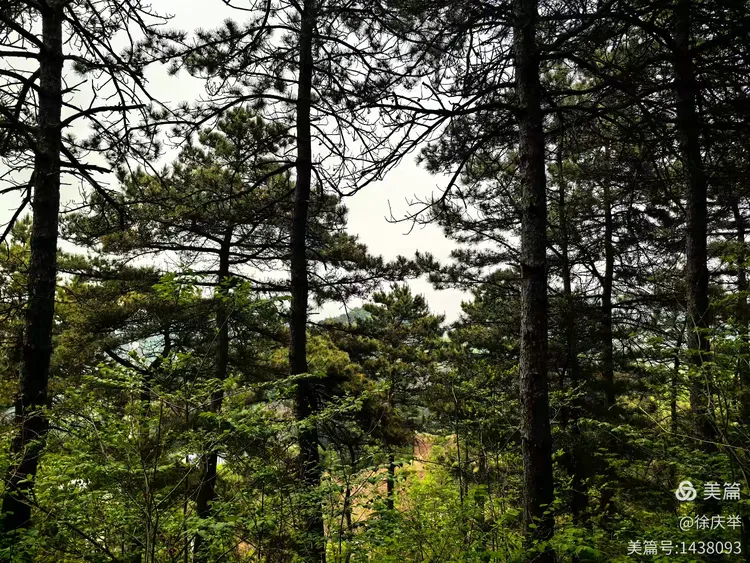 步道两侧的参天松树。