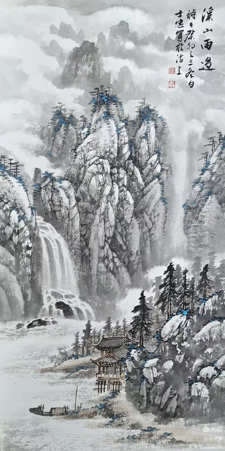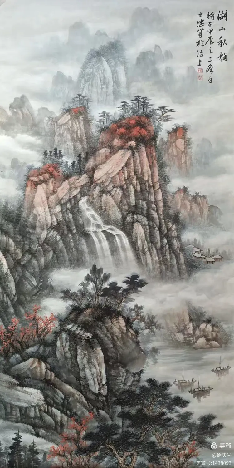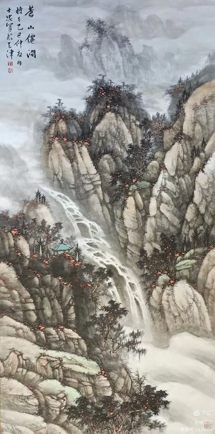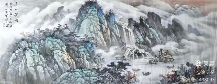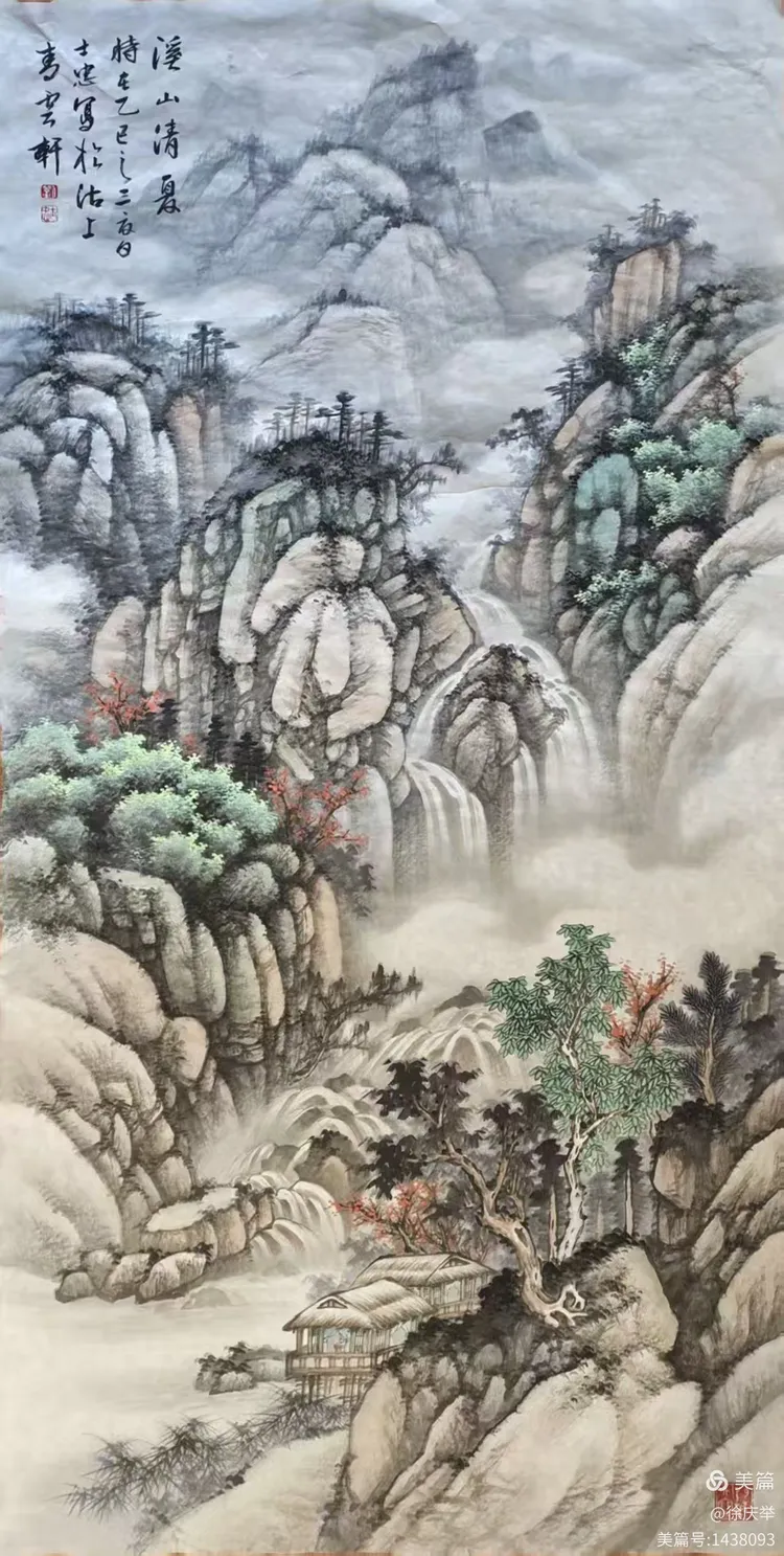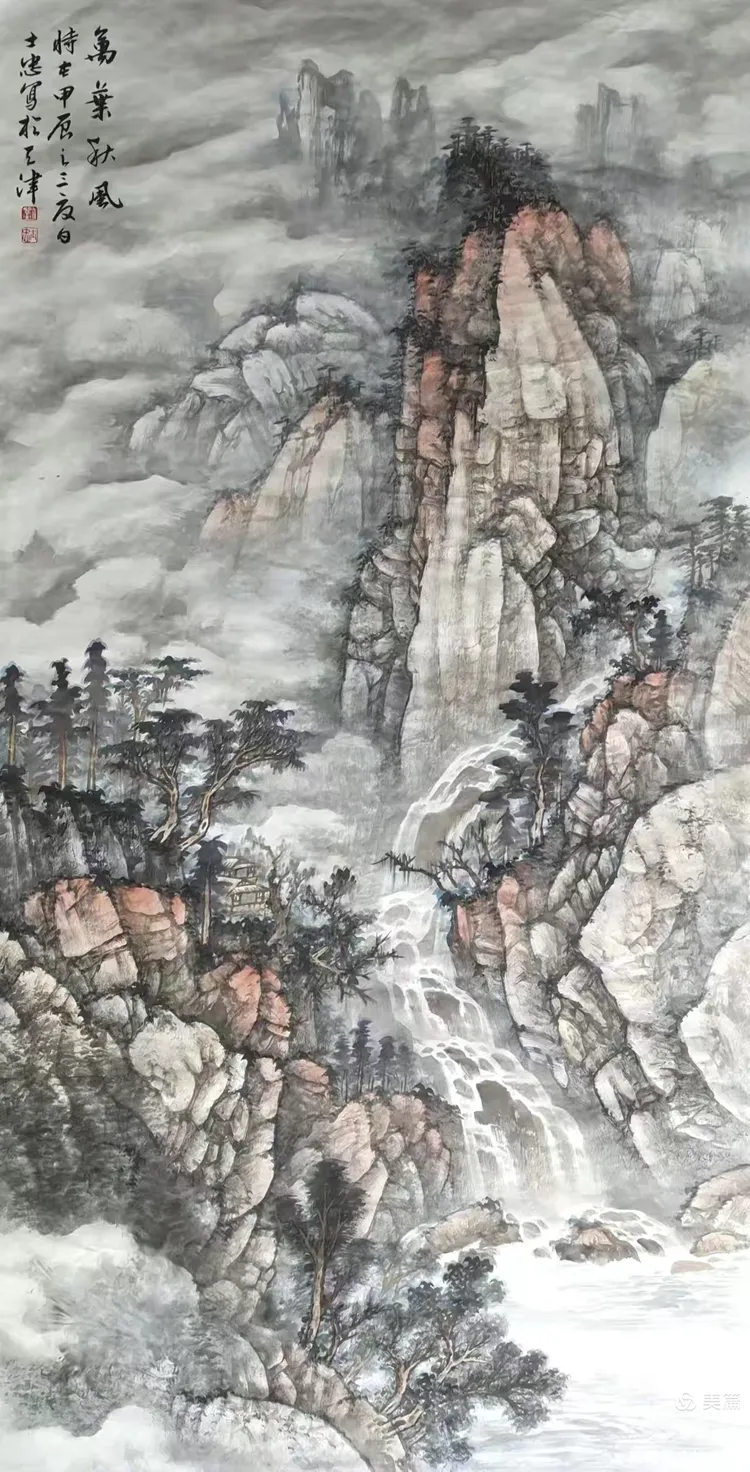 刘士忠的画作多表现秀水险峰、怪石奇松,其构图立意高远、意境深䆳,既有传统技法又刻意求新。他笔下的峰松多奇变,松皮苍老却显示出旺盛的生命力,其丰厚的内涵和意境引起人们的无限遐想。