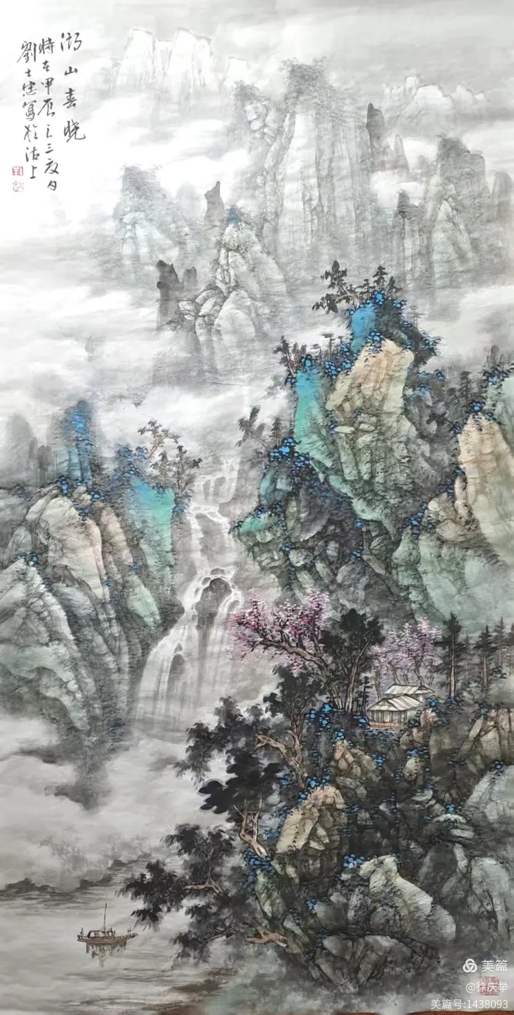 近年来,刘士忠的画作在工笔技法的基础上,融人了写意技法,其画作更加苍劲雄奇,气韵更洒脱、灵动,作品师法自然、妙趣天成,在富于变化的山川景物中融入了纯朴率真的性情与个性,使其画作既有古人的意韵,又注入了现代人的理念和气质,广受好评。