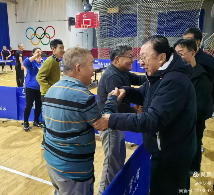 许绍发的到来令参赛选手们非常惊喜,纷纷前来与一代乒乓名将握手。