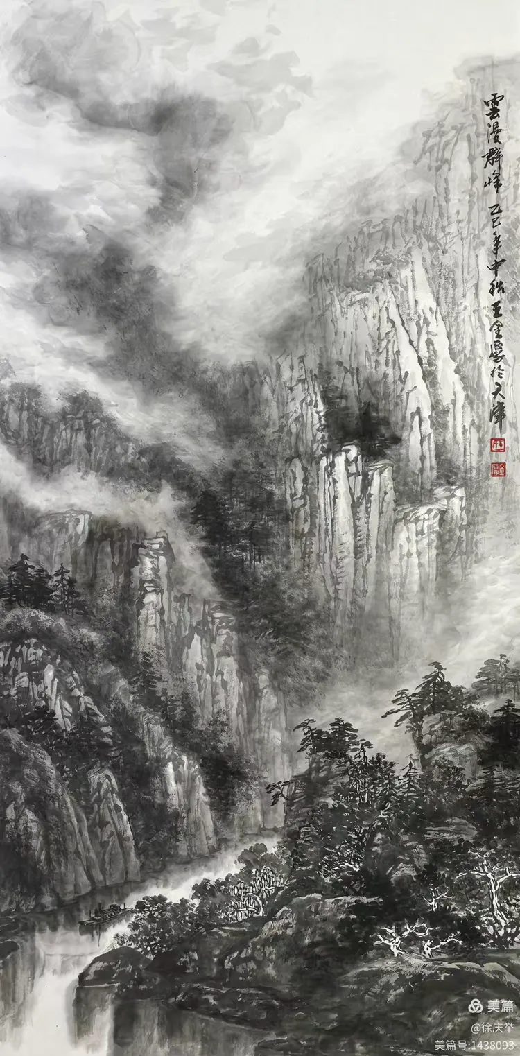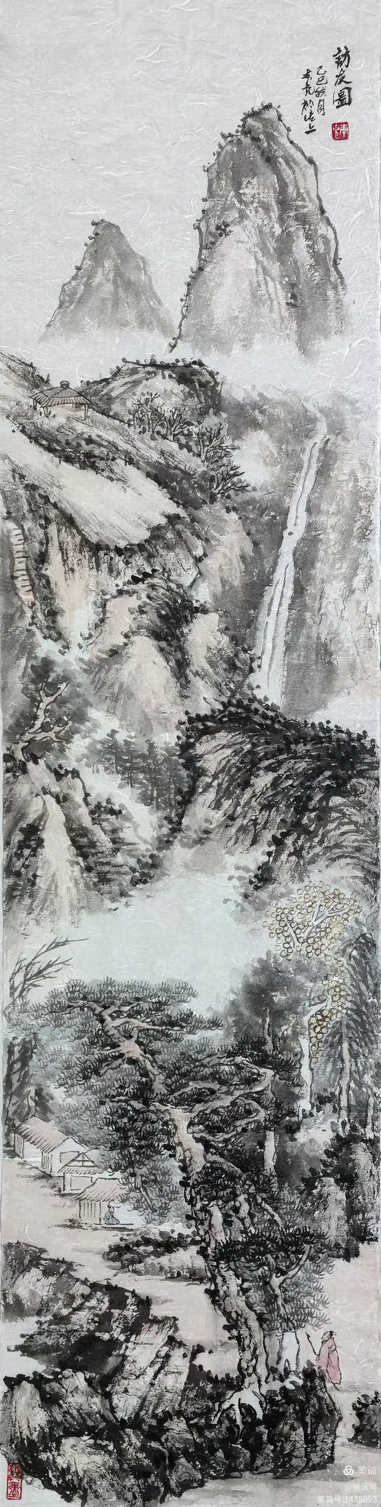 多年来,一直致力于山水画的创作与研究,对山水画有着一套自己的独到见解。其作品不仅表现出对传统经典的敬意,也体现出一位画家的自我要求。在他的山水画中,无论是山形树貌,还是云水屋桥,都丝丝入扣、审慎勾勒,一笔一划精心构筑静穆幽远的艺术世界。