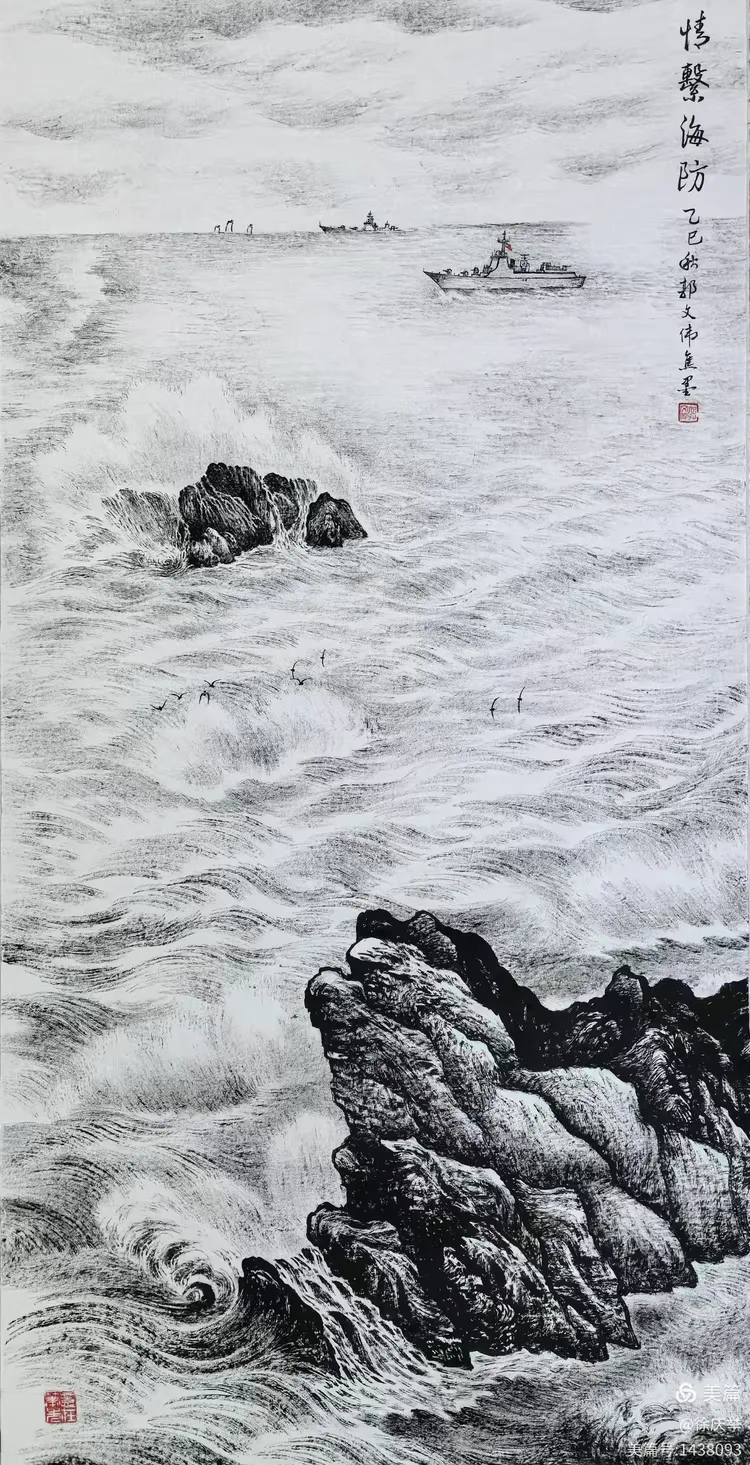 郭文伟,1939年生,中国海洋画家代表人物之一,焦墨海洋画开拓者,全国著名海洋测绘专家,现为中国海洋画家协会副主席、中国太平洋学会海洋画派研究分会副会长、中国海洋画派研究中心副主任、天津市美术家协会会员、天津市老年书画研究会理事、郑州师范学院美术学院和黄河文化艺术研究院客座教授,是绘画与艺术理论研究兼收的画家。出版有《郭文伟山水画集》《郭文伟海洋画艺术》及十多部科技著作,荣获海峡两岸德艺双馨艺术家、优秀人民艺术家、天津市职工艺术家等荣誉称号和多项科技进步奖。不久前,由天津人民美术出版社出版、郭文伟撰写的《中国画与科学之交响——中国画科学探微与海洋画理论体系构建》一书,在2025年度国家级优秀海洋图书(期刊)推荐与推广活动中,荣获“2025年度国家级优秀海洋图书奖”,标志着中国海洋画理论体系建设取得了里程碑式的国家级学术认可。