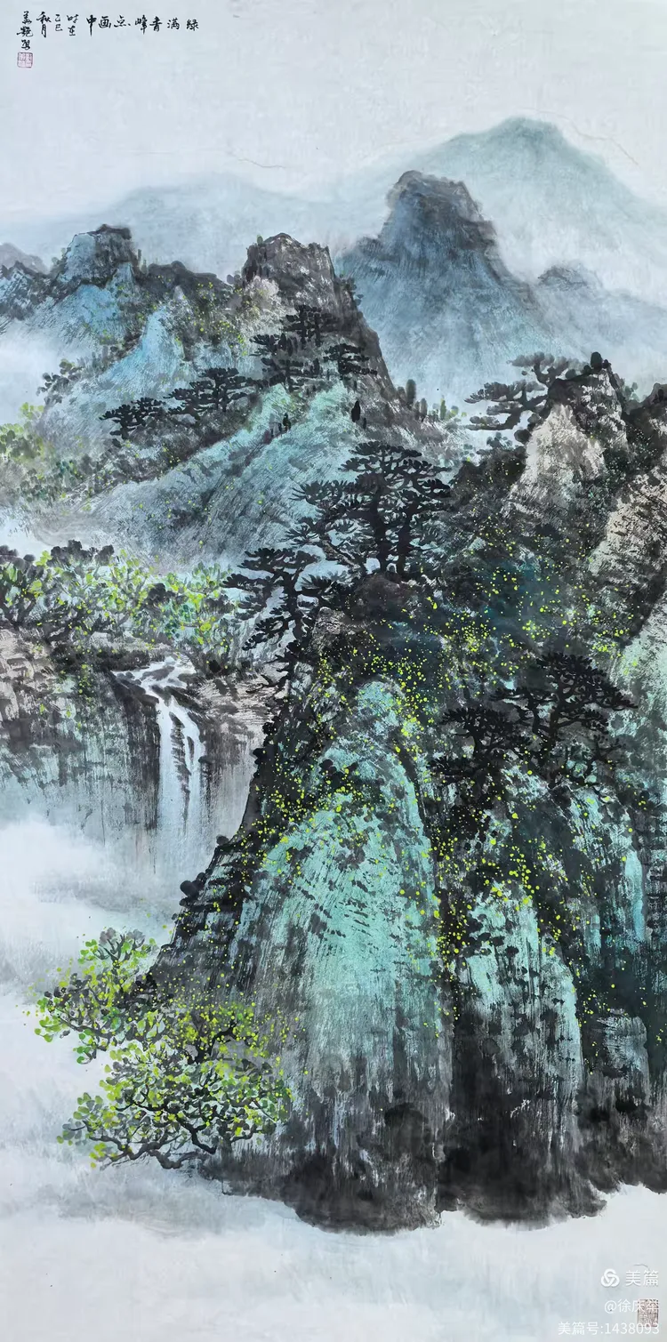 刘美艳参展作品《绿满青山点画中》。68x136cm
