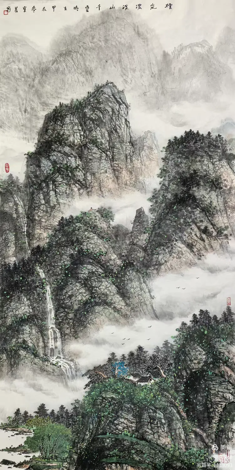郝宝善参展作品《烟岚浓淡山千叠》。68x136cm