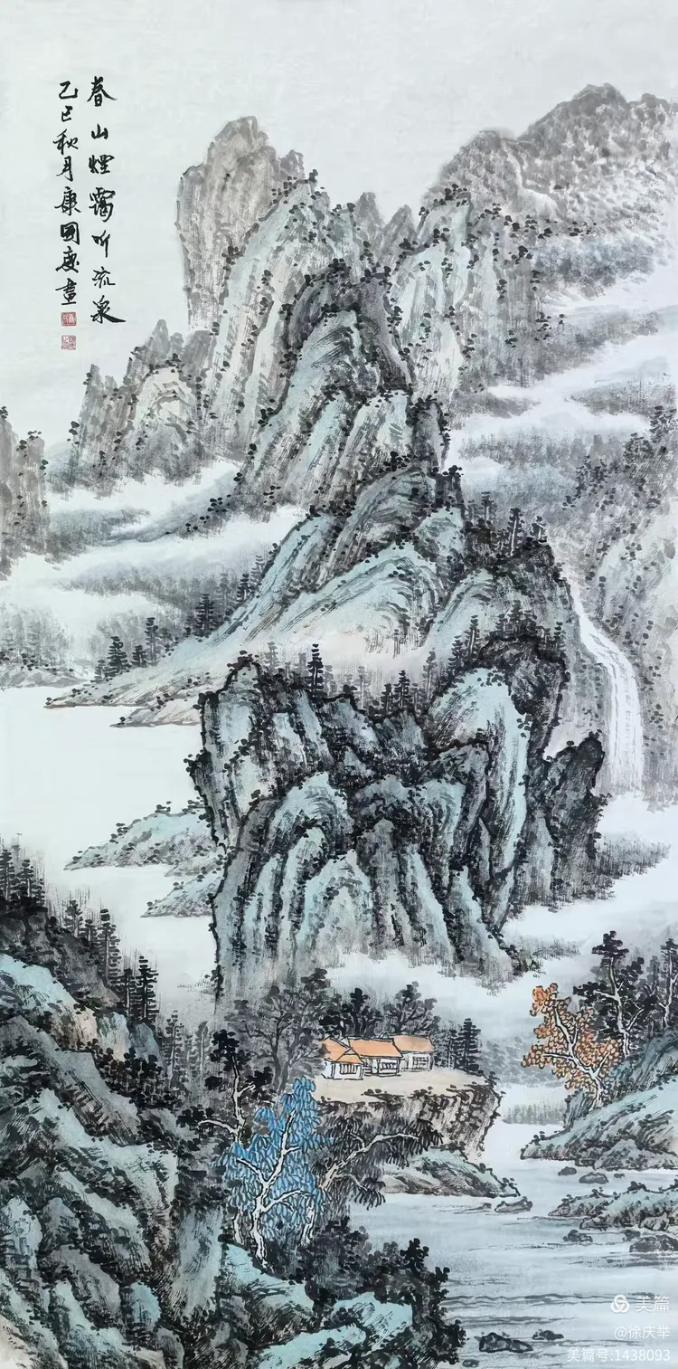 康国庆参展作品《春山烟霭听流泉》。68x136cm