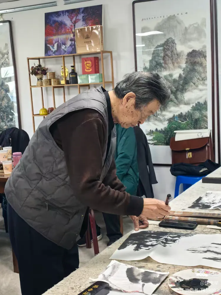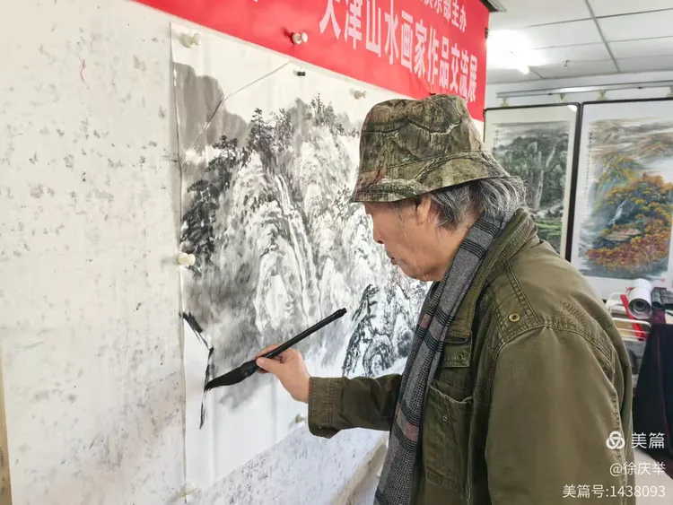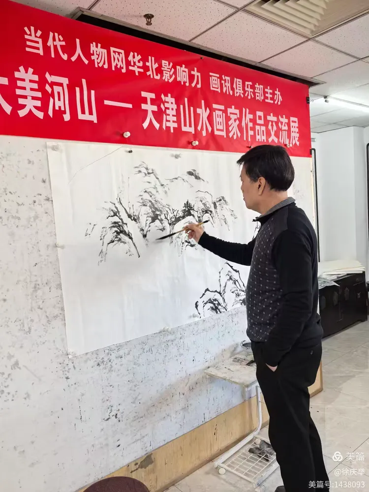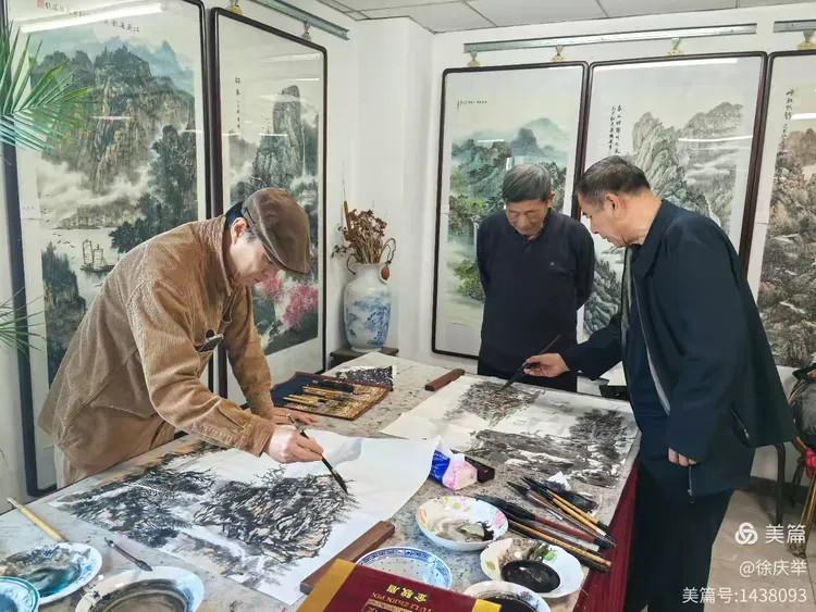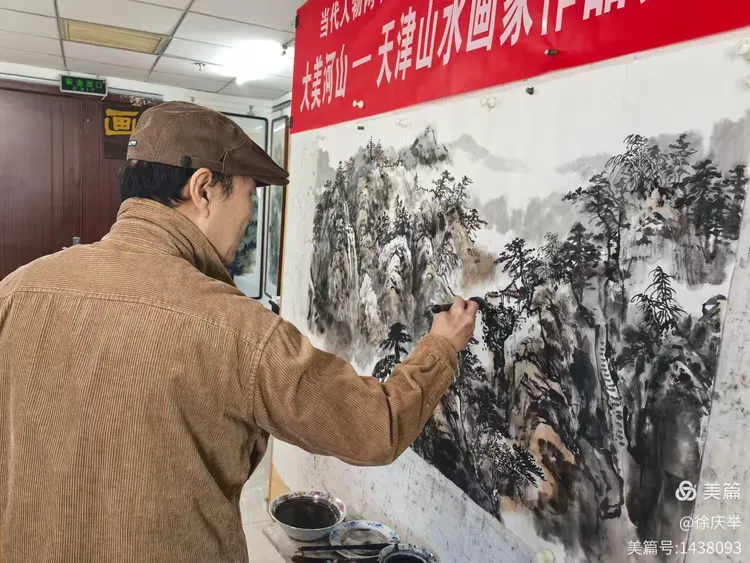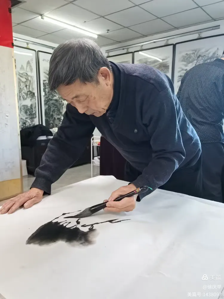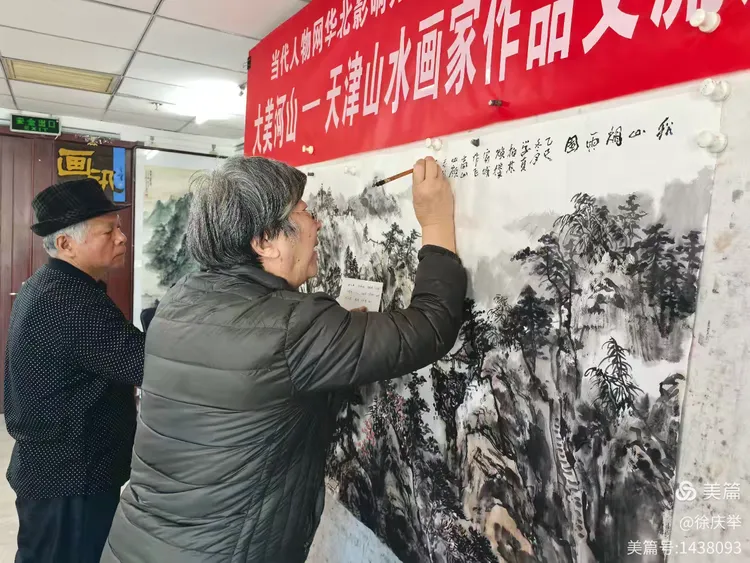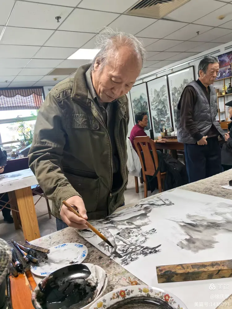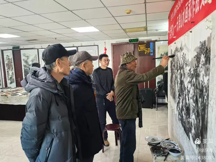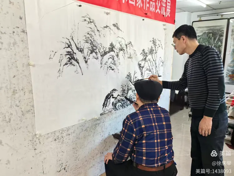 笔会现场还合作了一张六尺整纸山水画。徐庆举先生开笔。