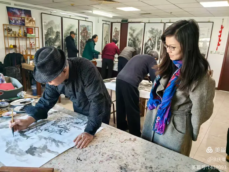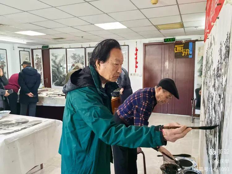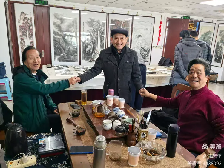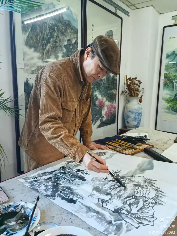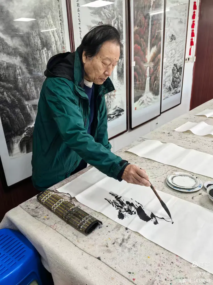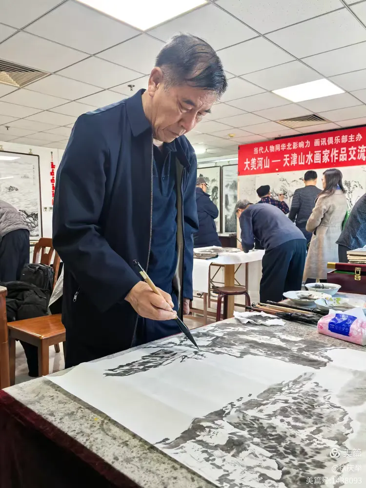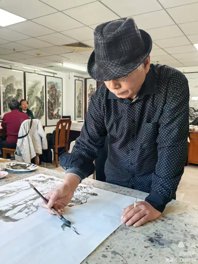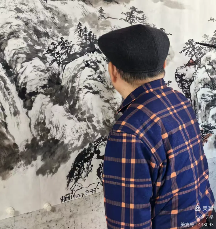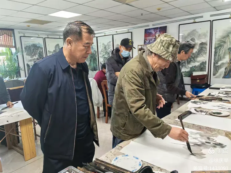 笔会现场还合作了一张六尺整纸山水画。徐庆举先生开笔。