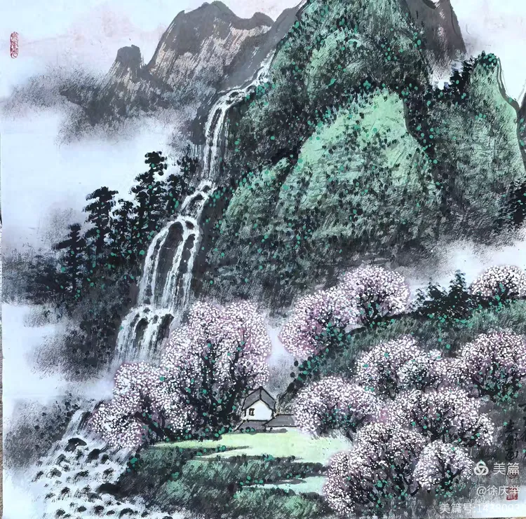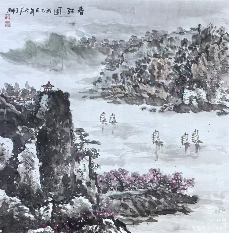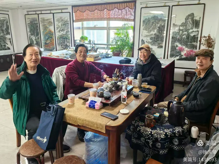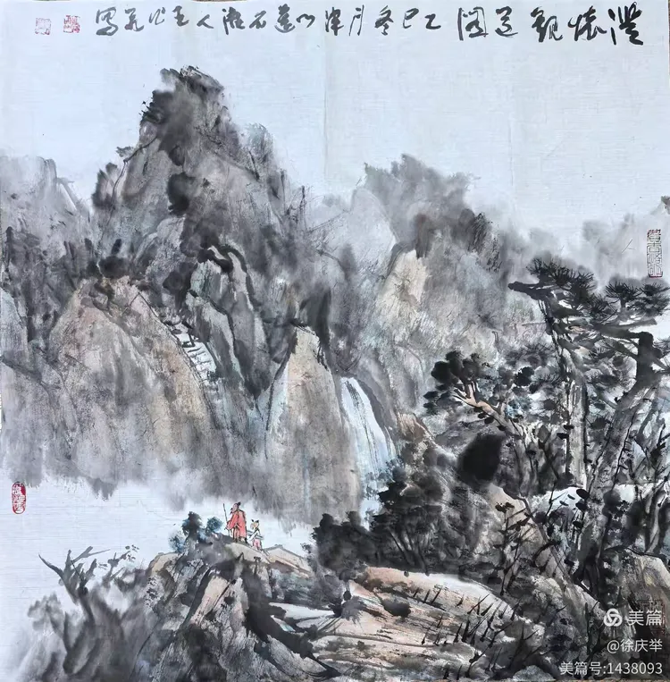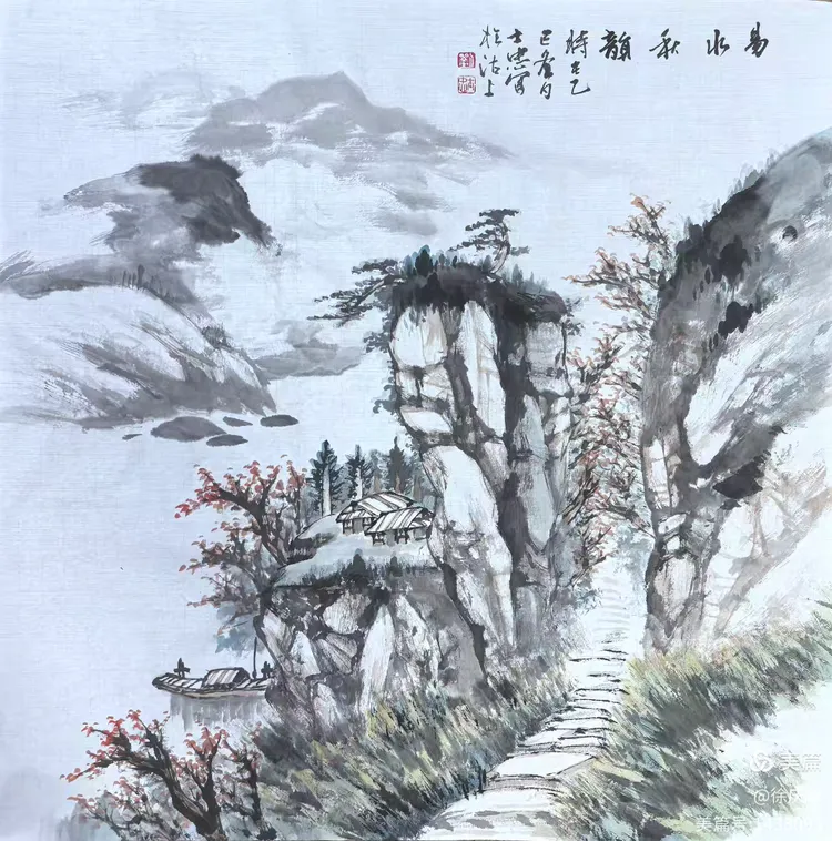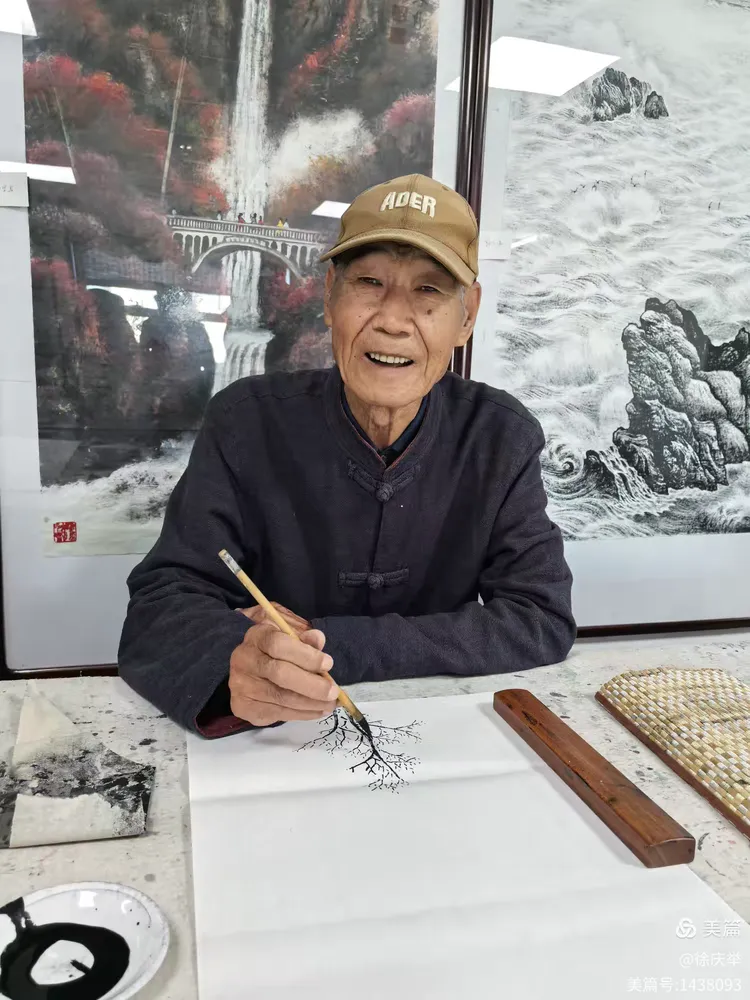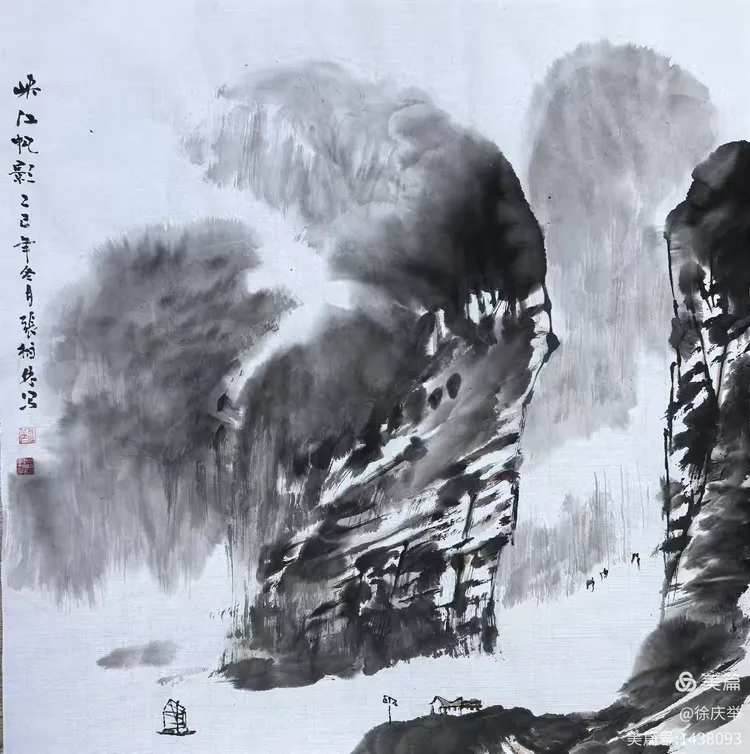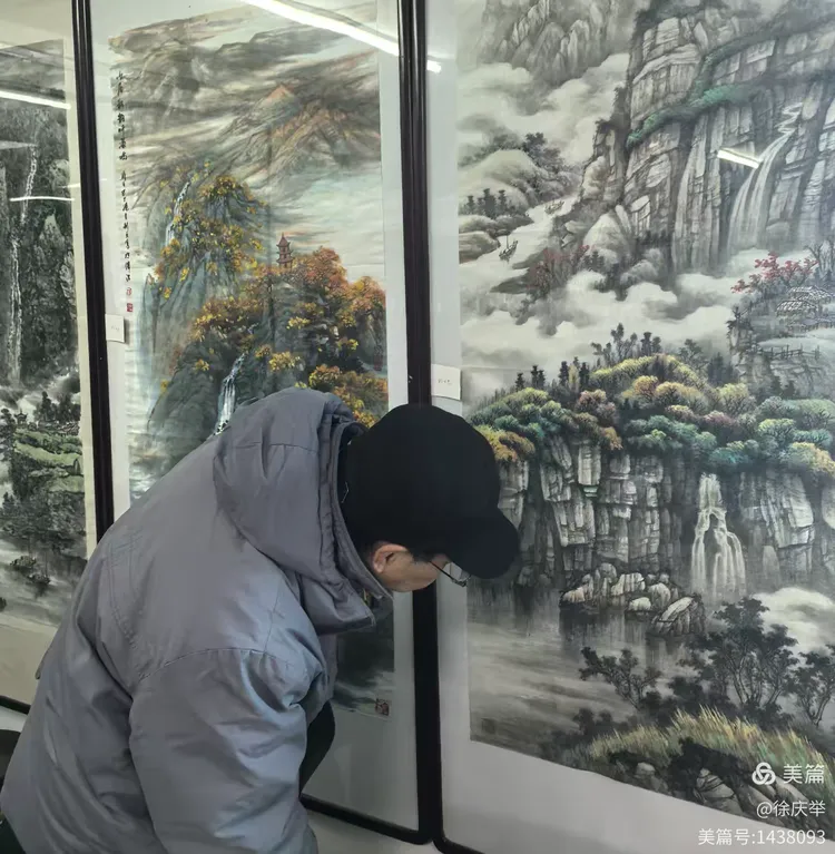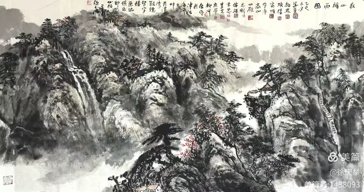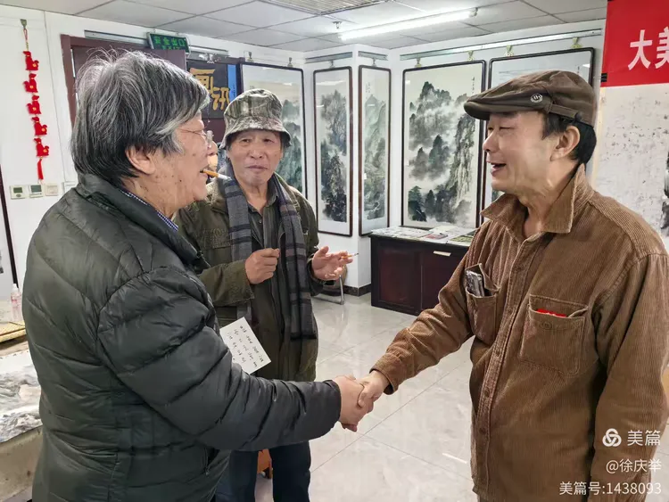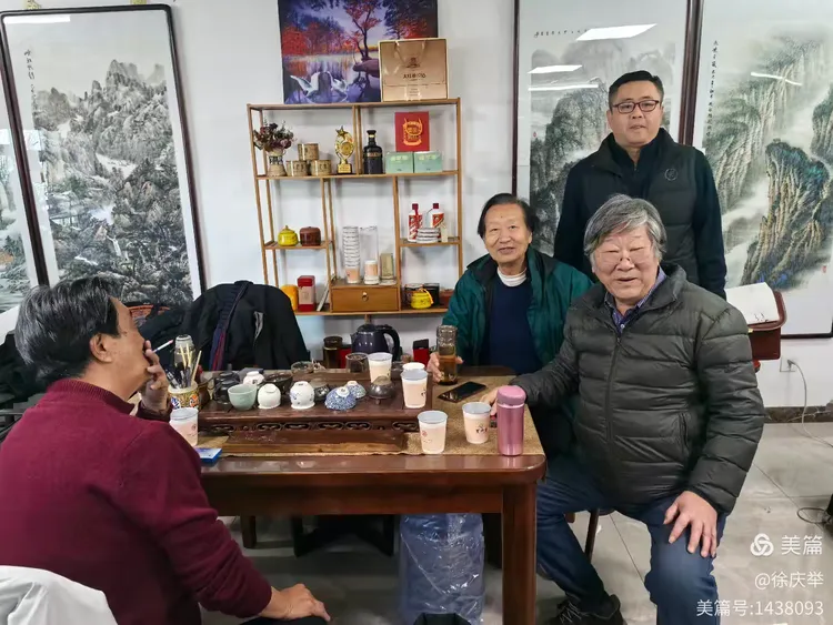 笔会现场还合作了一张六尺整纸山水画。徐庆举先生开笔。