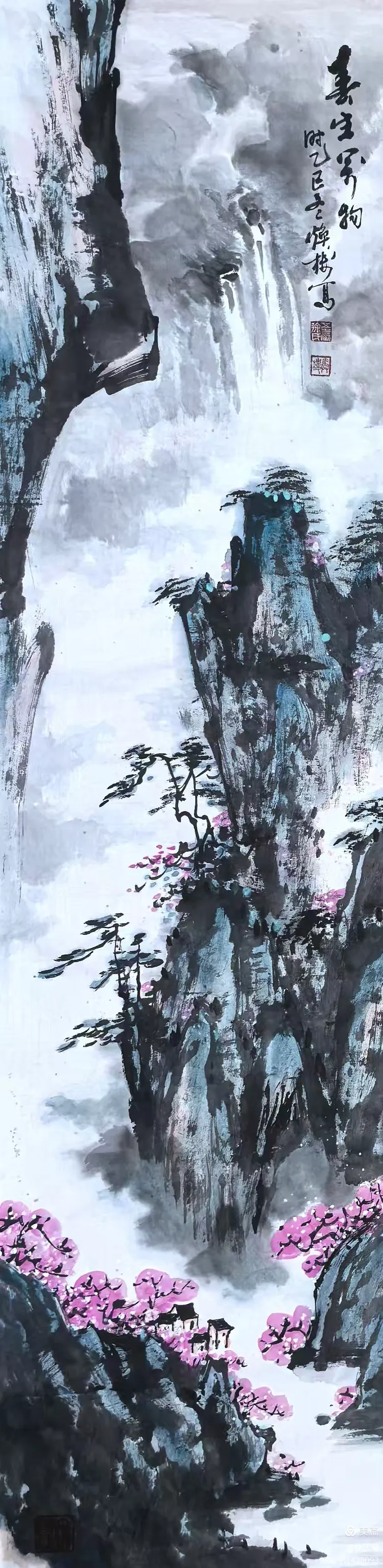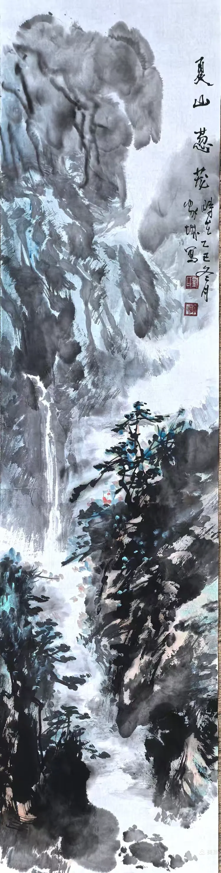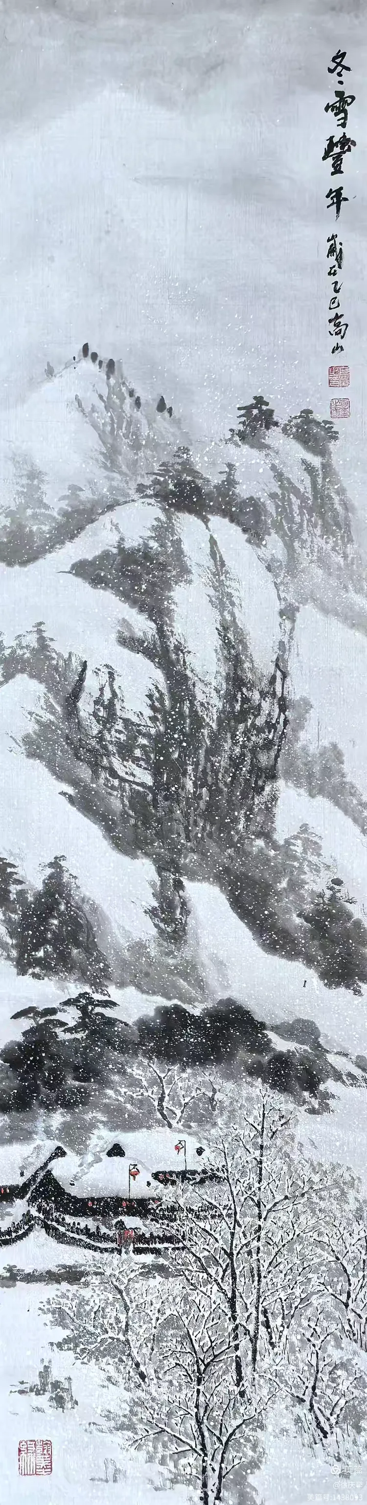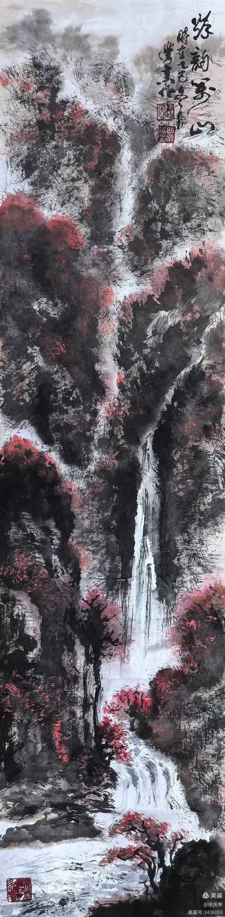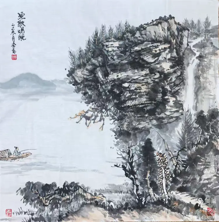 笔会现场还合作了一张六尺整纸山水画。徐庆举先生开笔。