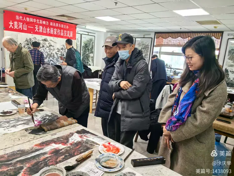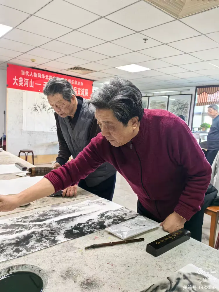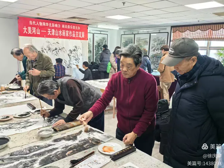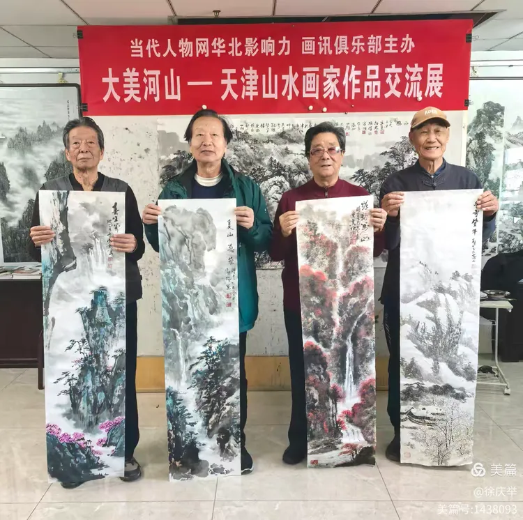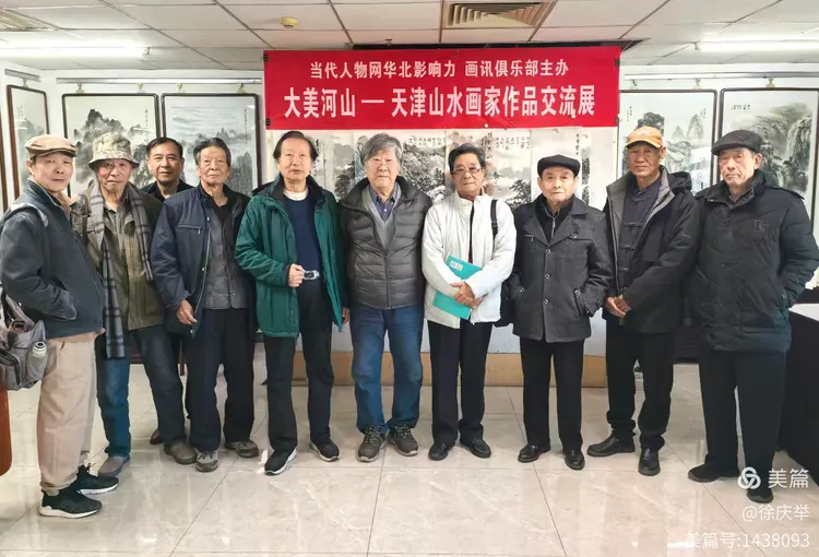 华北影响力报道:(记者柳河) 由当代人物网旗下城市品牌网站华北影响力和《画讯》俱乐部共同主办的"大美河山一一天津山水画家作品交流展”于今天上午在天津湾凯德写字楼B座824揭幕。曲学真、张柏林、徐焕楼、刘家城、王作飞、高山、王山岭、张志刚、王体强、刘士忠、李克、徐庆举、柳河等参展画家(按年龄排序)在现场进行了交流笔会。