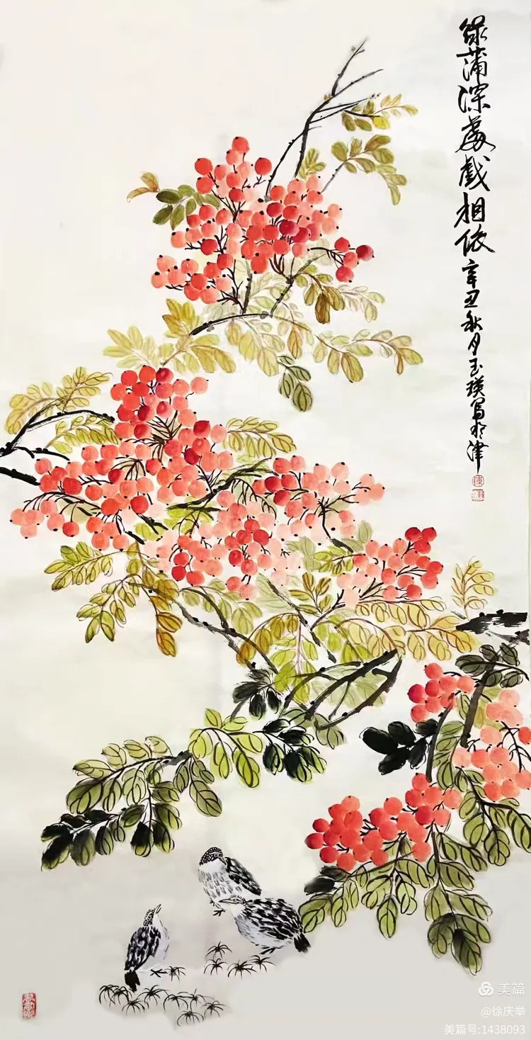 闫振亮,1957年生。1975年参加工作,中共党员,从年轻时就喜欢书画,作品多次参加单位和区级书画展。退休后在天津和平老年人大学学习三年写意山水和写意花鸟,现为滨海新区和天津老年书画协会会员。