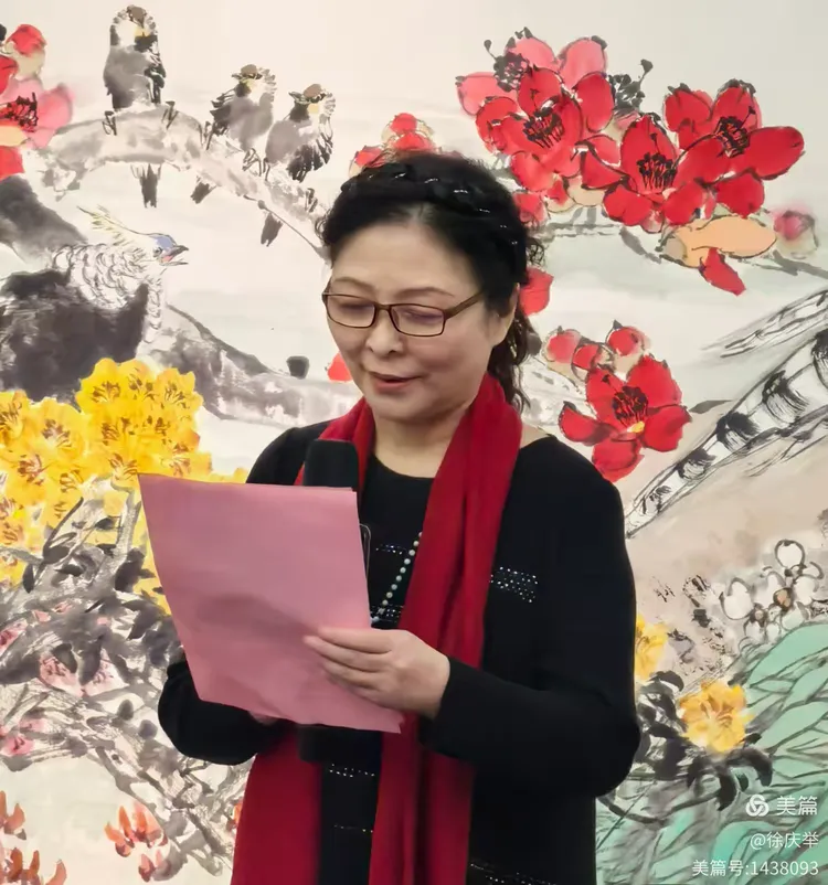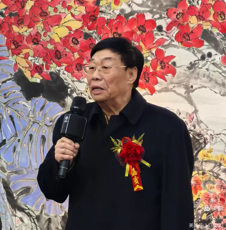 李国英朗读著名画家陈冬至、霍然从海南三亚发来的贺信。