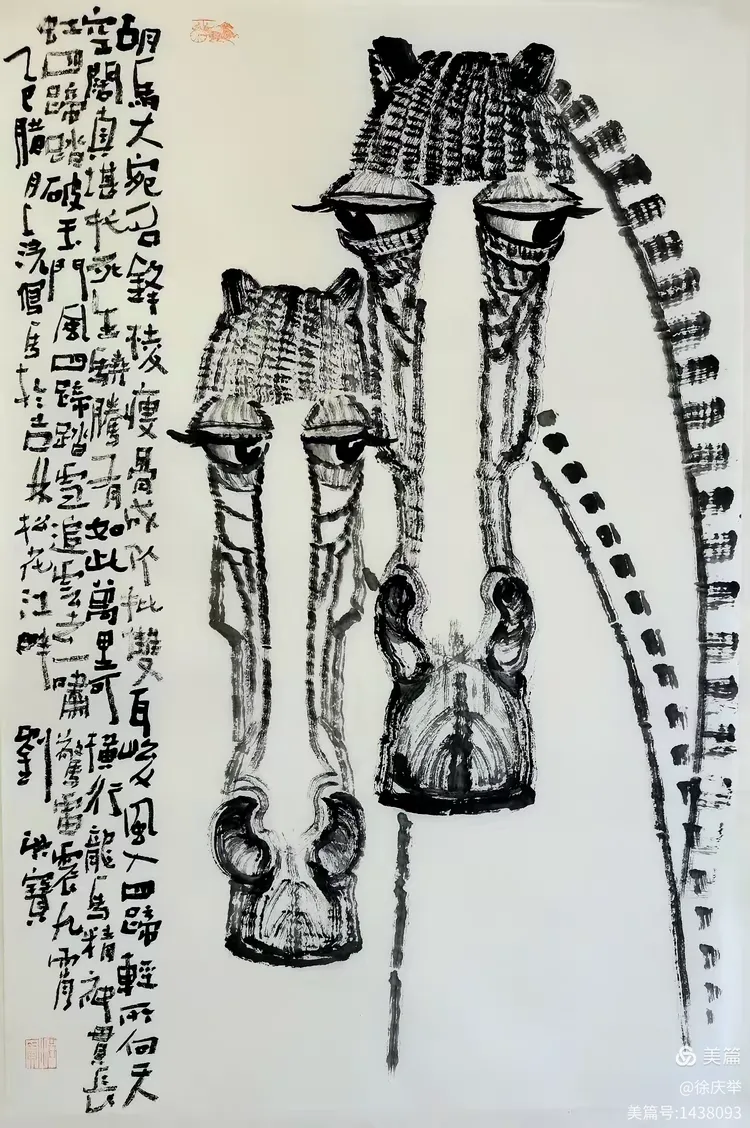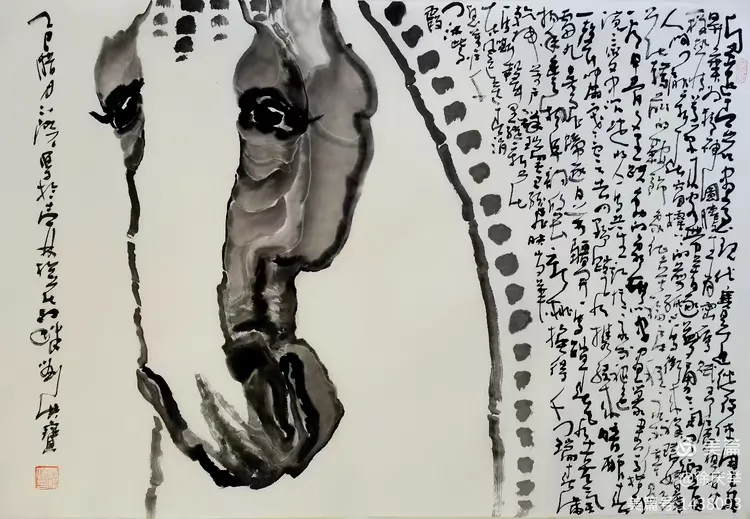 当您看到我的画以及在画上写的字,您也许想说这个人在展示书法还是画?其实是以书补画之空白,两者相得益彰。