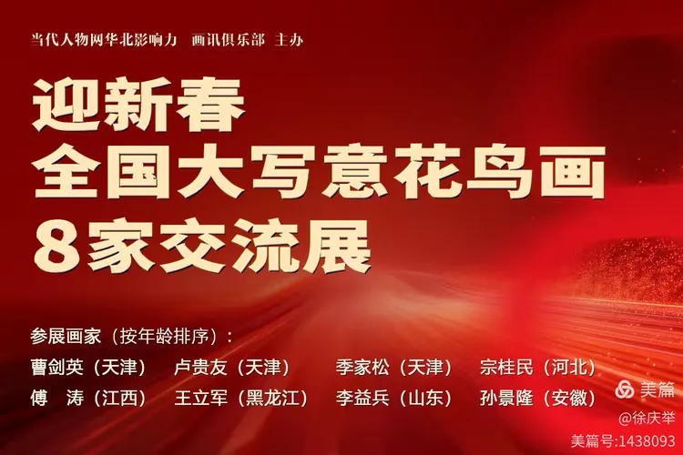 当代人物网华北影响力讯(记者徐庆举 柳河): 由当代人物网华北影响力和天津画讯俱乐部共同主办的"迎新春全国大写意花鸟画8家交流展"于2026年2月5日在天津揭幕。