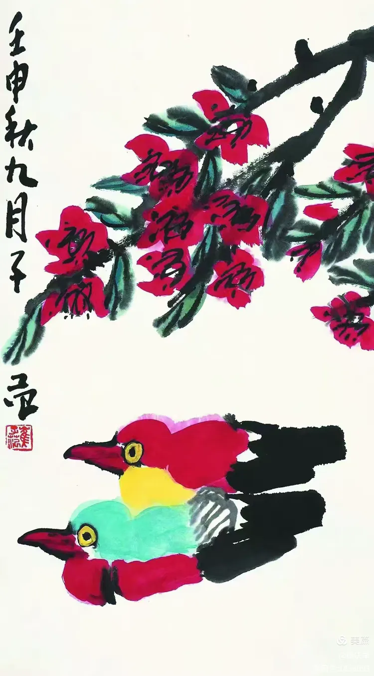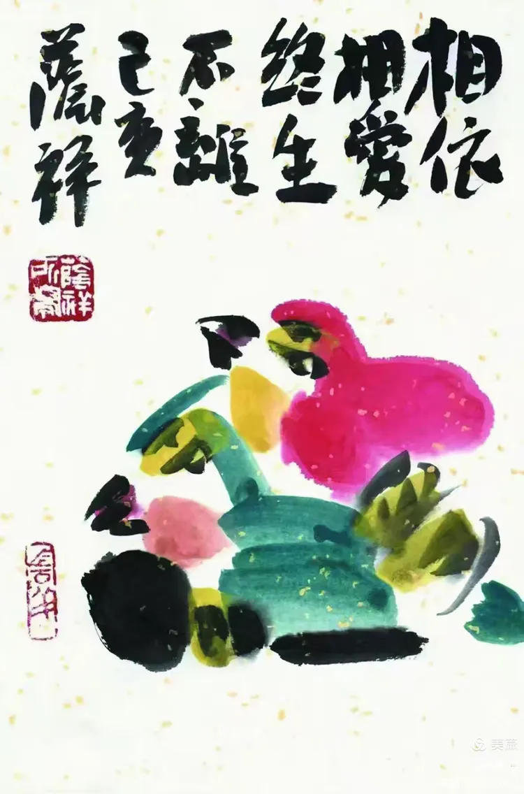 崔老一生保持着吸收学习的状态,从不满足于现状,这一点影响了刘荫祥。他喜用重彩,用色单纯而强烈,画面看上去童心未泯,盎然有趣。有一次,刘荫祥问他为什么把鸳鸯画得那么红,崔老说:“鸳鸯还是那个鸳鸯,我只不过给它换了件衣裳。”他告诉刘荫祥:“画画要注意大感觉,比如春之绿、夏之红、秋之黄、冬之白,这都是大感觉。把握住大感觉,才不会为小处而拘泥。”这种时尚前卫、不囿于固定范式的思维也深深影响着刘荫祥,为此,他后来经常鼓励自己的学生:“千万不要给自己设限,更不能停止思考。”