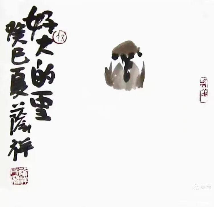 神领意造,童趣活笔的意境其实就像盐,生在水中白晶晶,撒在水中影无踪。看表面,水依旧,但如果品味一下,其已咸了。由此想到天津大写意画家刘荫祥的作品《好大的雪》里的意境。