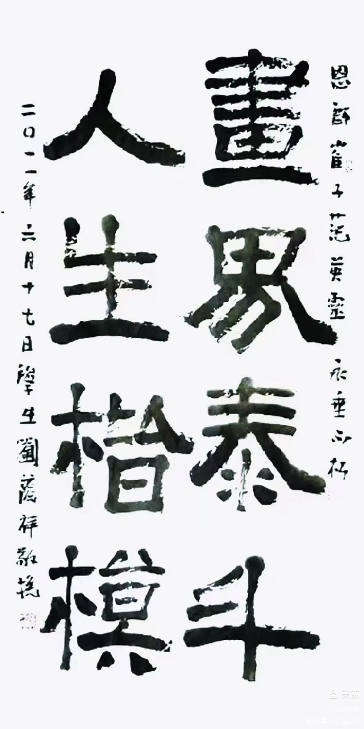自从和崔老接触之后,只要没有特殊原因,刘荫祥每年都要带上自己的作品去看望他。不仅是绘画,崔老的人品也深深地影响了刘荫祥,自此齐派的大写意国画艺术更有了人文精神一脉相承的大格局与大视野。崔老去世后,刘荫祥在博客里写道:“恩师崔子范的仙逝,是徒儿们的重大损失,也是我国美术界的重大损失。”并撰写挽联“画界泰斗 人生楷模”悼念崔老。