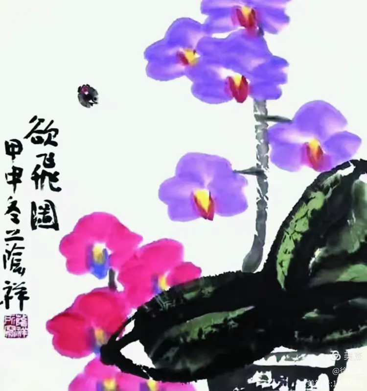 刘荫祥学崔子范,基本上属于“师心不师迹”,这也是刘荫祥一直坚持多年的艺术主张。每次见面,崔老都给刘荫祥讲一些创作的心得体会,拿出自己的作品让他研习,给他分析并悉心点评他的作品。看到画得好的,崔老就大加鼓励,看到画的青蛙后说:“对,这样画很好,你画的青蛙比我的画得好!”看到画的金鱼,说:“咦?你这样画?这样也挺好嘛!”看到画的茨菇草都是短茎,甚至不画茎,他就说:“你这样处理得不错。”并且说准备把这种画法吸收到自己的画面中。有一次,崔老看了刘荫祥画的蝴蝶兰,高兴地说:“过年的时候,朋友也给我送来蝴蝶兰。我画了几次,可总觉得不满意,没想到你给画成了。好好画吧,你画出来了,我就不画了。”